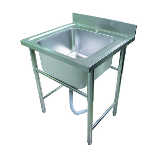 Lavafondo 1 taza 700 mm, equipo de acero inoxidable AISI 201 con tazón de 500x500x300 mm, respaldo mural sanitario, patas regulables y desagüe, ideal para uso en entornos que requieren higiene y funcionalidad.